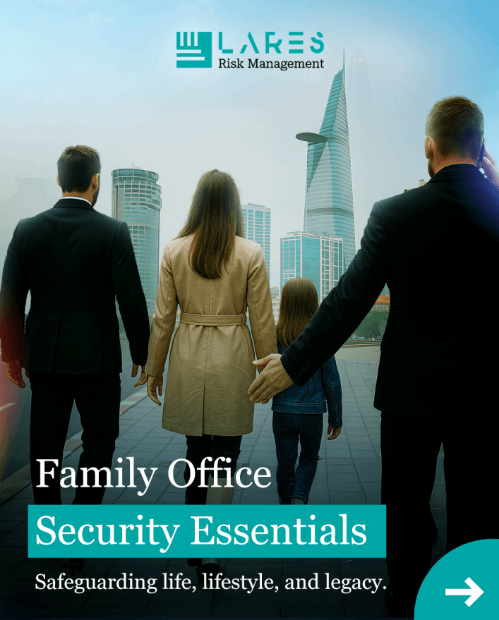 Unlike financial family offices, Lares Risk Management International delivers Family Security and Risk Oversight: discreet, resilient, and scalable protection for private families and ultra-high-net-worth individuals (UHNWIs).
