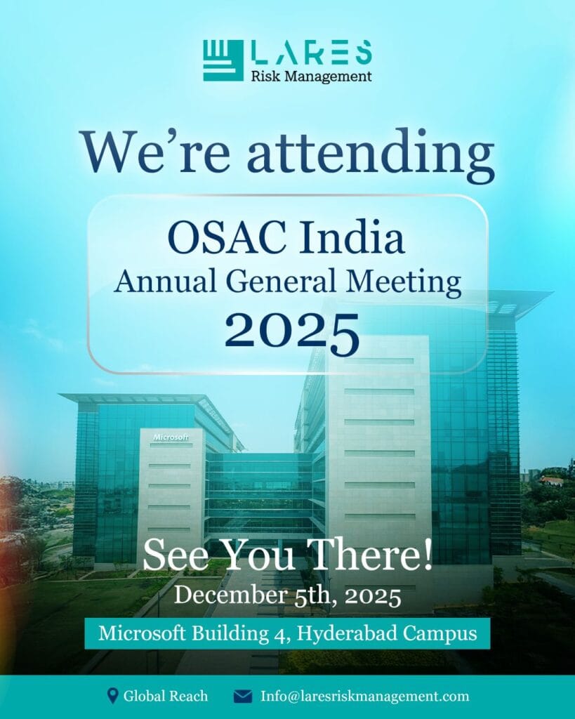 Lares Risk Management International will attend the 2025 OSAC India Annual General Meeting on 5th December in Hyderabad, India.
